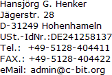 Sofern im Impressum von www.c-bit.net Daten gemäß §6 TDG fehlen, werden diese kurzfristig ergänzt.